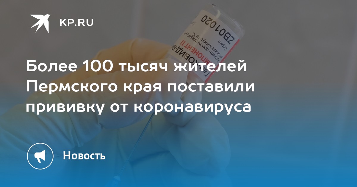 По данным Минздрава, с начала массовой вакцинации и на 7 апреля первым компонентом «Спутник V» привито 100 613 жителей Пермского края. Больше половины из них - 66 012 человек - поставили второй компонент вакцины.